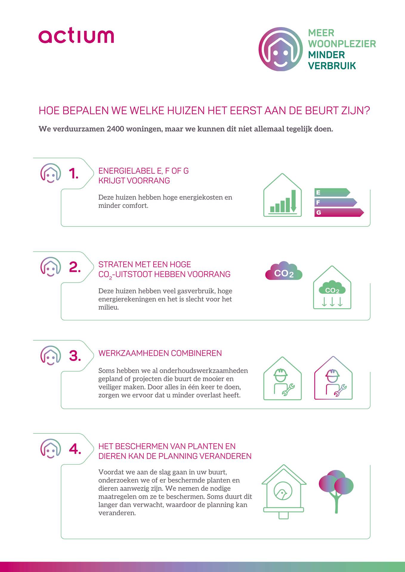 We gaan je huis beter isoleren en we plaatsen zonnepanelen en we installeren een (elektrisch) warmtesysteem (zoals een hybride warmtepomp).