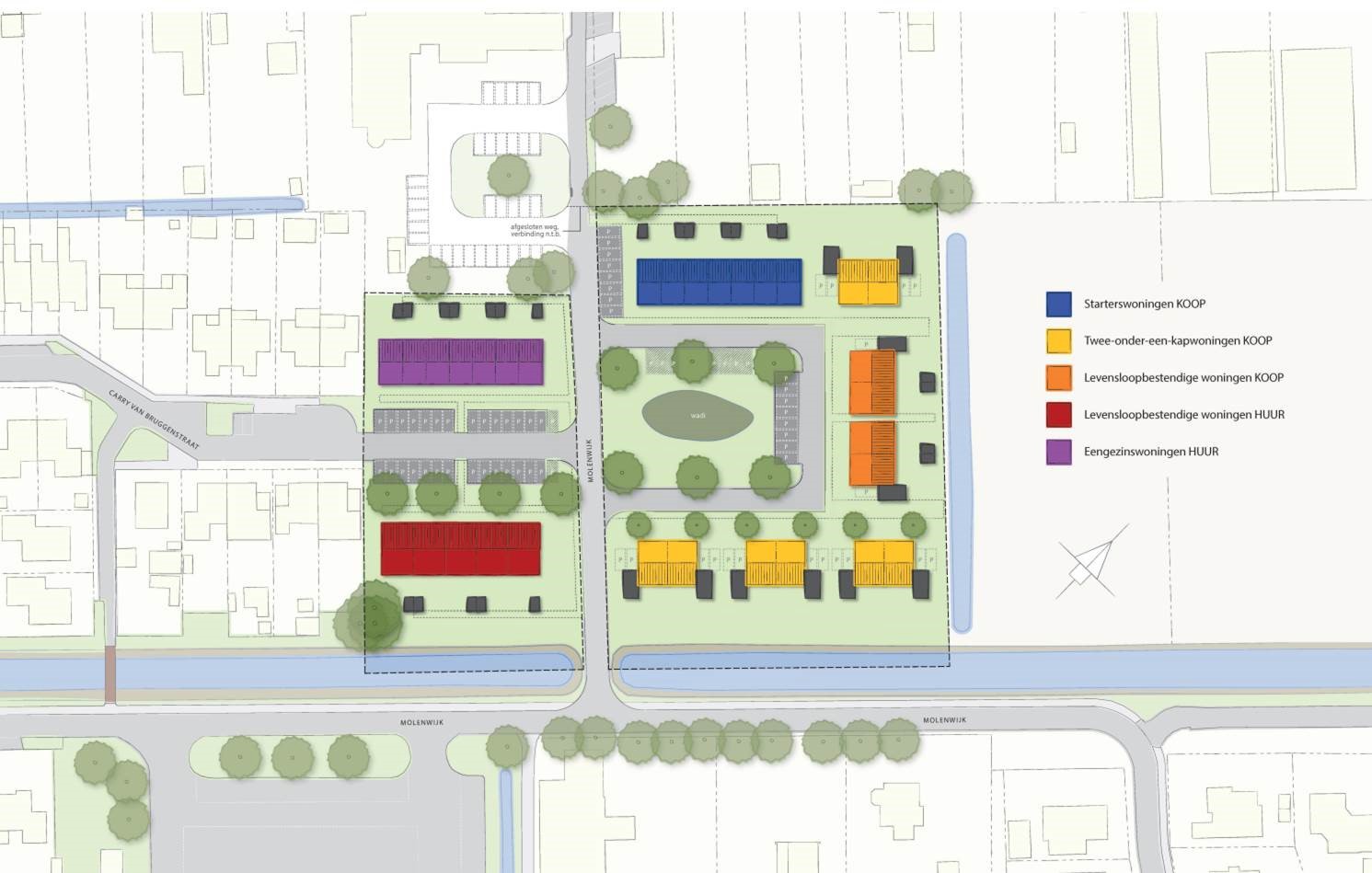 Het plan bestaat uit 12 sociale huurwoningen voor Actium, 7 sociale koopwoningen voor starters en 12 overige koopwoningen gebouwd door Loostad.